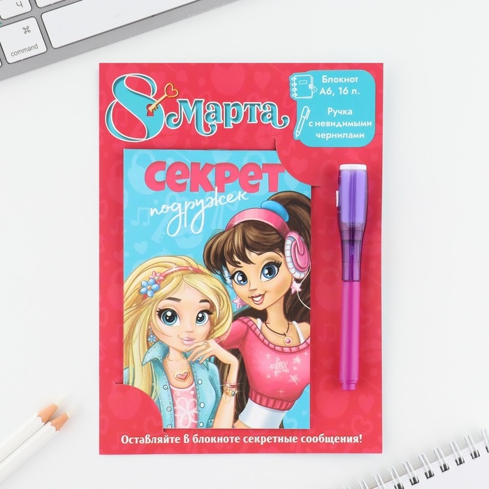 Подарочный набор: волшебная ручка и блокнот «8 марта: Секреты подружек»