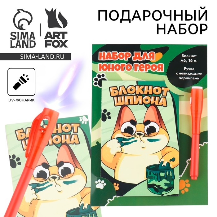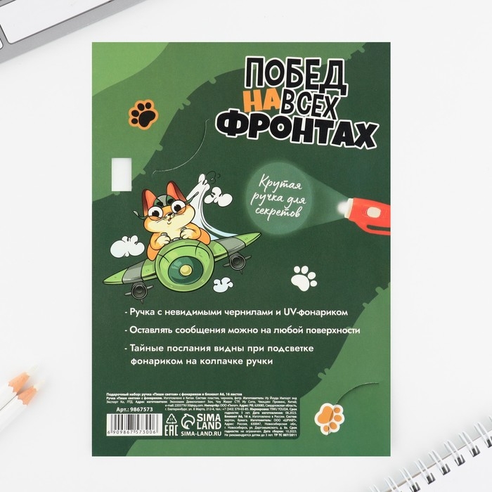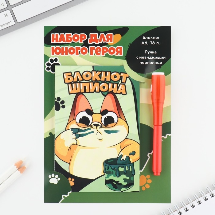 Подарочный набор: ручка с невидимыми чернилами и блокнот А6, 16 л «Кот»
