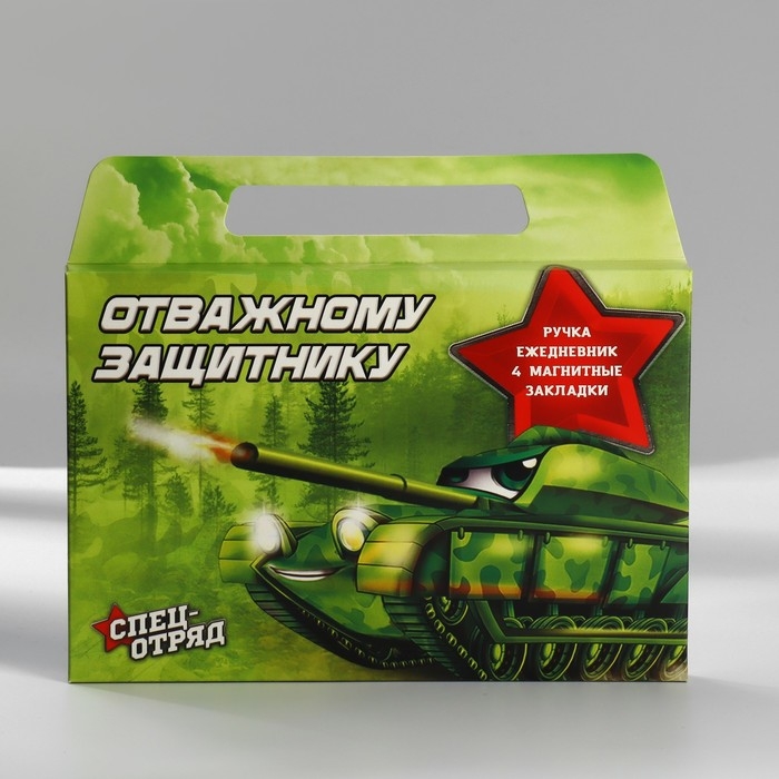 Подарочный набор в портфеле: ежедневник А5, магнитные закладки и ручка «Отважному защитнику»