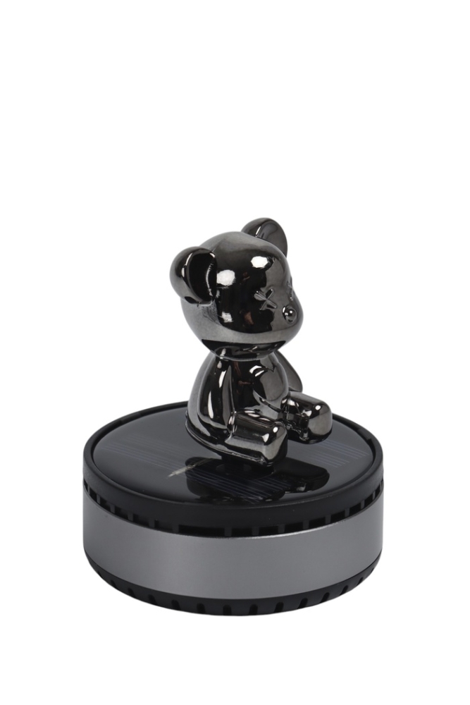 Аксессуар на панель с ароматизатором, мишка, вращается от солнца, серый