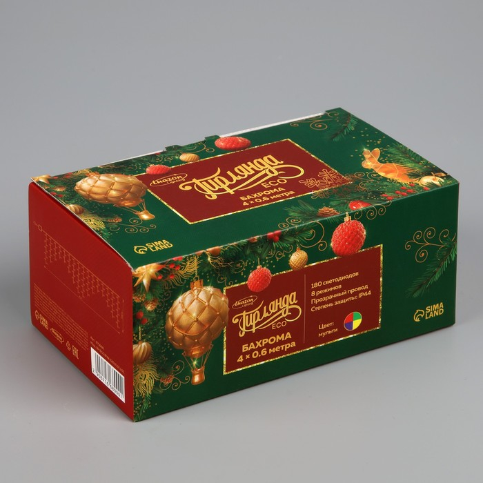 Гирлянда «Бахрома» 4 × 0.6 м, IP44, прозрачная нить, 180 LED, свечение мульти, 8 режимов, 220 В