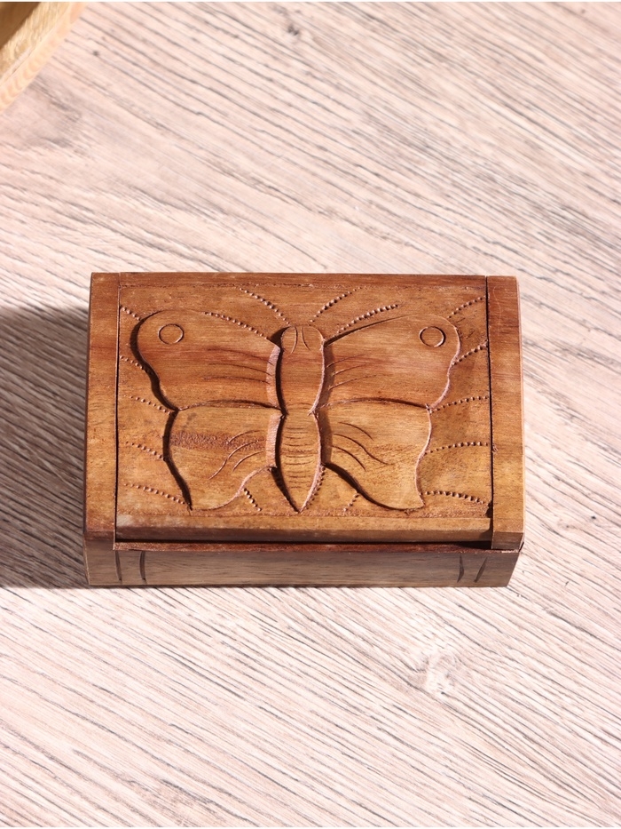 Шкатулка резная "Бабочка" дерево соно, 11х7х3,5 см