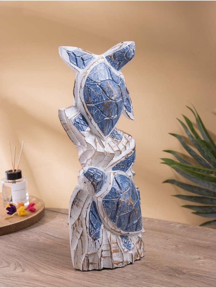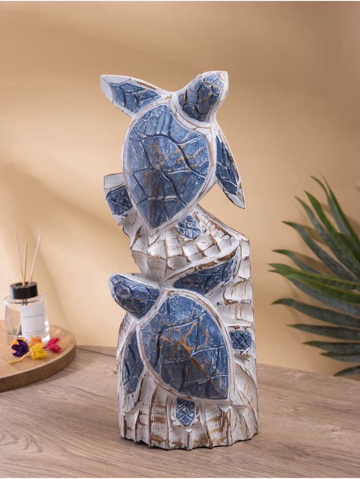 Скульптура "Морские черепахи" дерево Албезия, 15х8х40 см, цв. синий