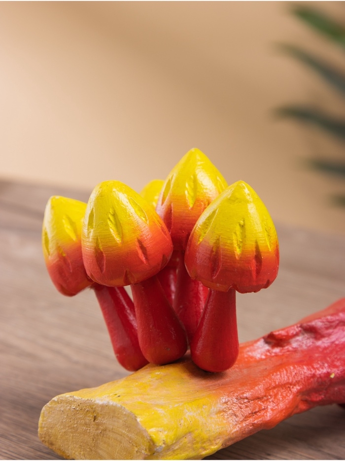 Сувенир "Коряга с грибочками" дерево Камал, 20х10х10 см, цв. красно-желтый