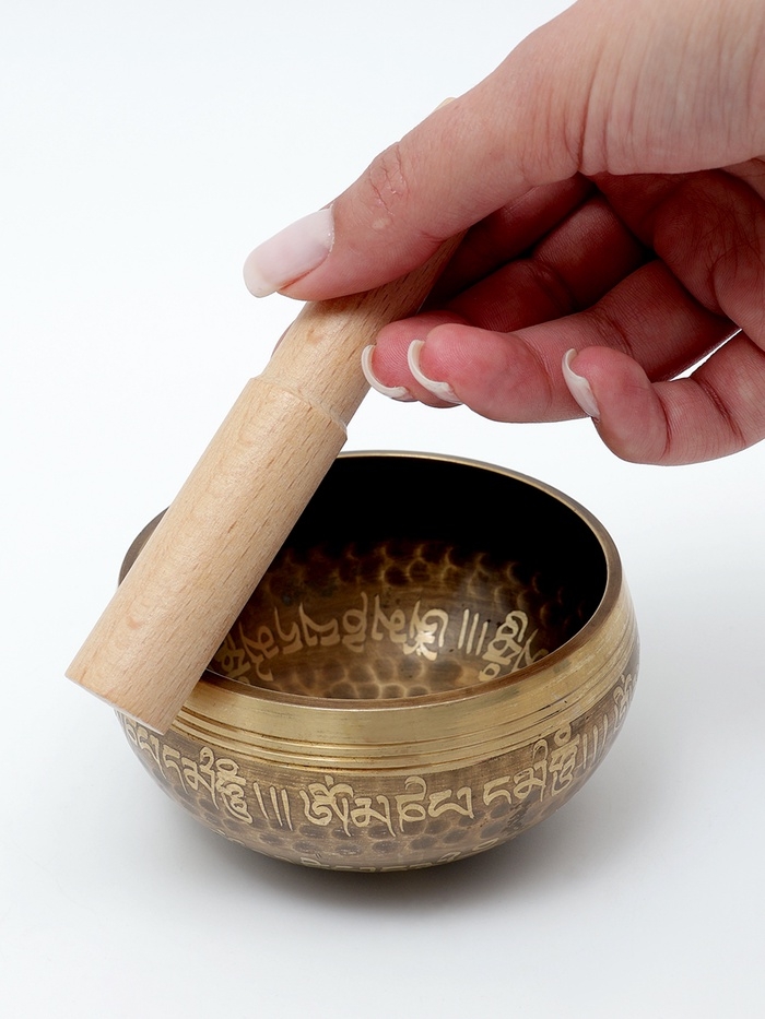 Музыкальный инструмент поющая чаша Music Life, золотистая с узорами, 9 см