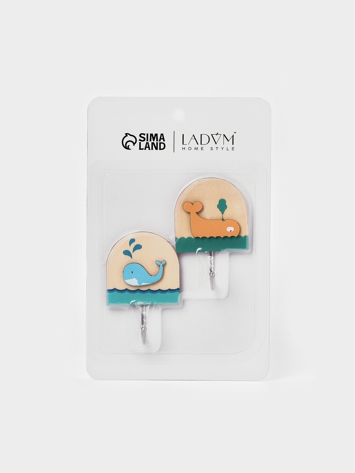 Набор самоклеящихся деревяных крючков "Wooden animals ", 2 шт 7,8х2,7х5,1 см