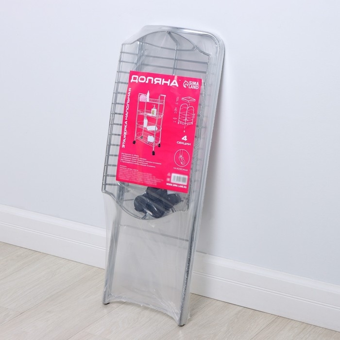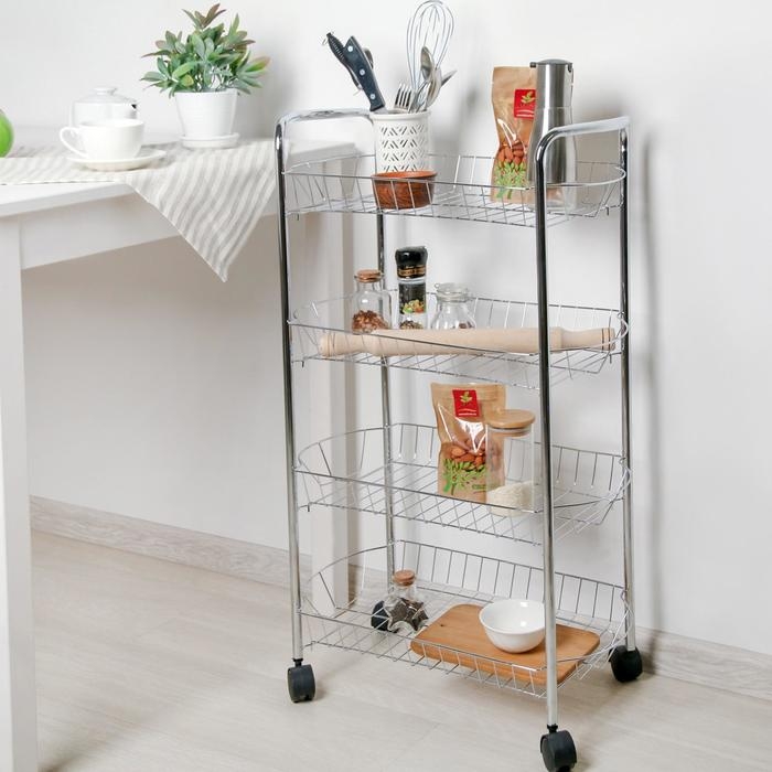 Этажерка напольная 4-х секционная Доляна, на колёсиках, 50×27×79 см, цвет хром