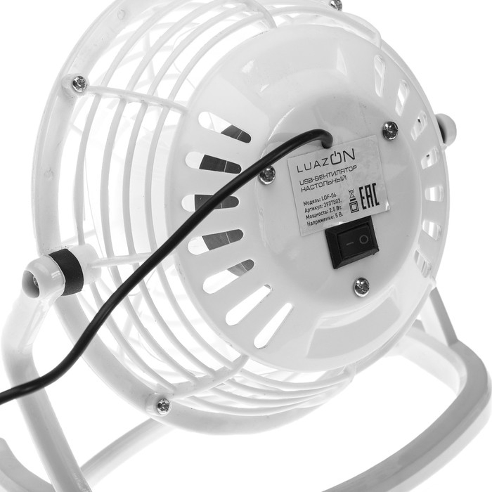 Вентилятор Luazon LOF-05, настольный, 2.5 Вт, 12 см, металл, белый