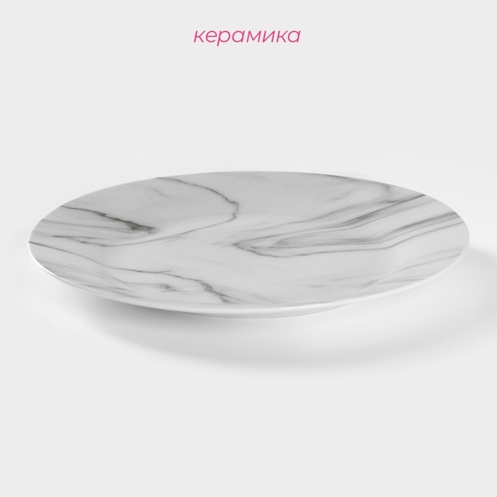 Тарелка керамическая обеденная Доляна «Мрамор», d=24 см, цвет серый