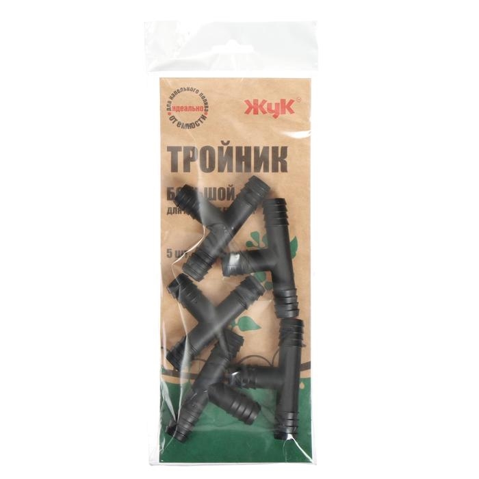 Набор Т-образных соединителей для капельного полива от ёмкости, 1/2" (12 мм), 5 шт., «Жук»