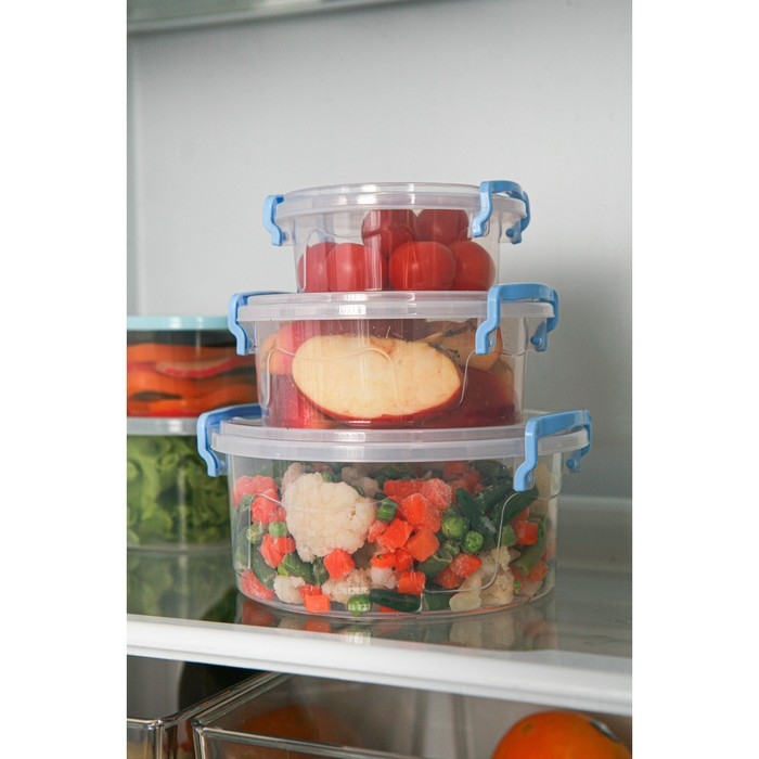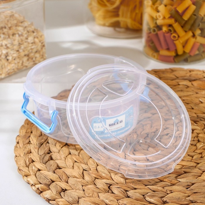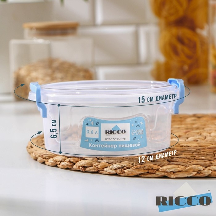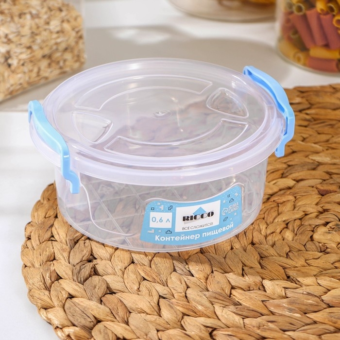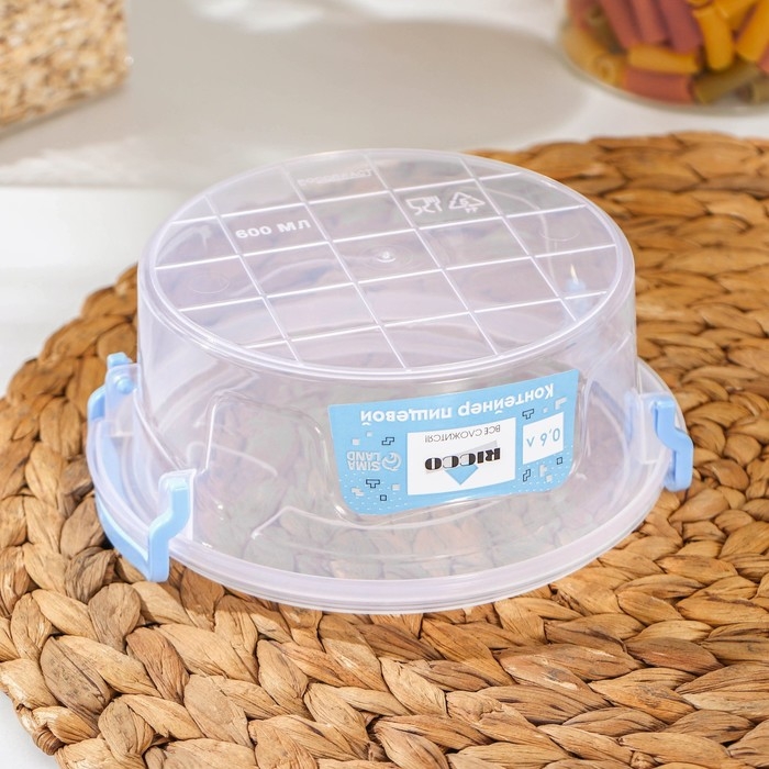 Контейнер пищевой RICCO, 600 мл, d=13,5 см, h=5,5 см, круглый, цвет прозрачный, голубой