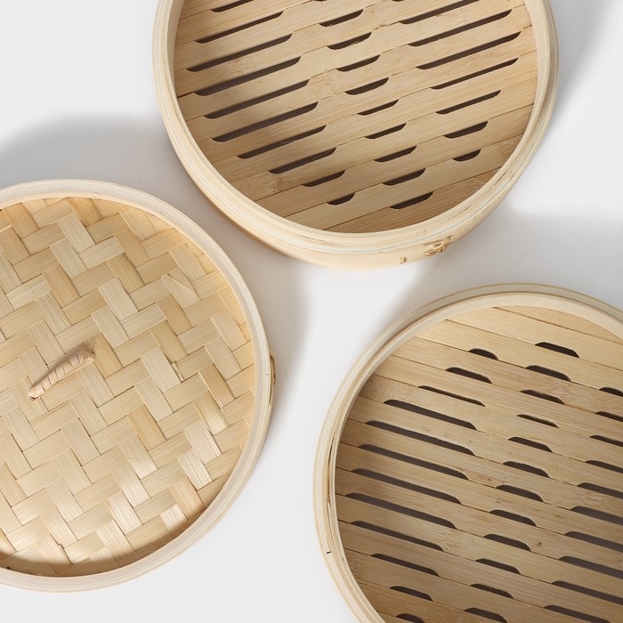 Пароварка Доляна «Восточная кухня», 3 этажа, d=21 см, бамбук