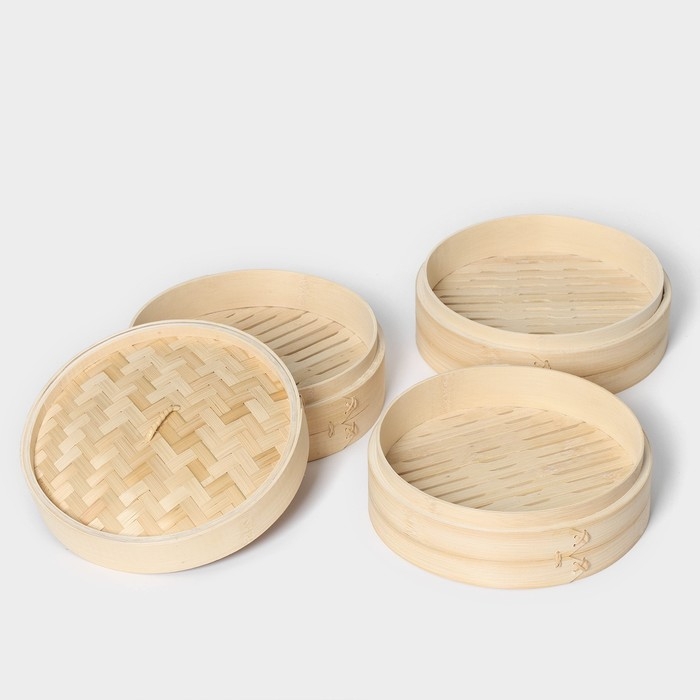 Пароварка Доляна «Восточная кухня», 3 этажа, d=21 см, бамбук