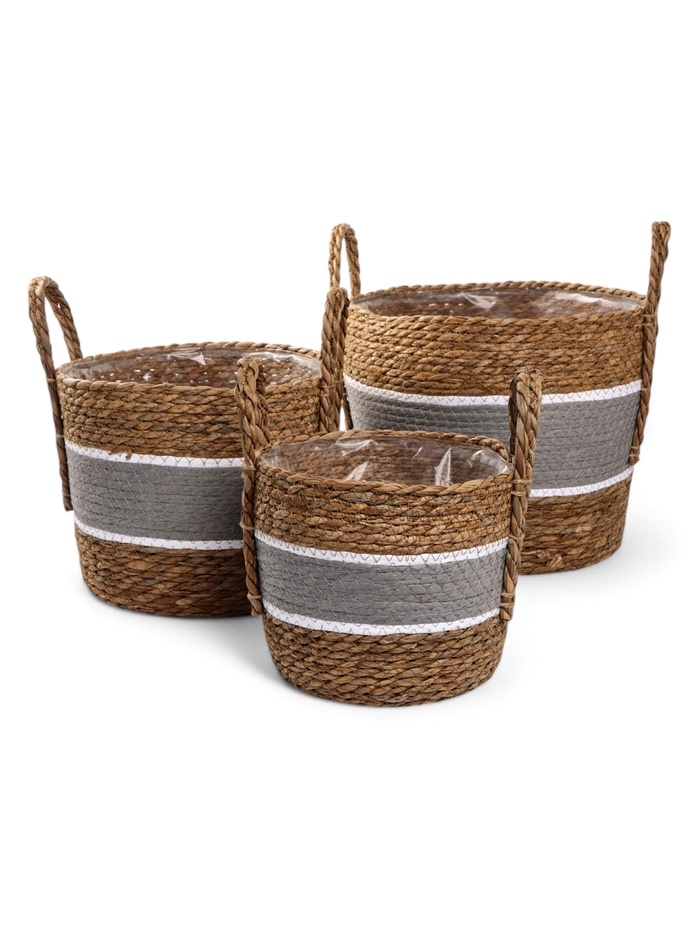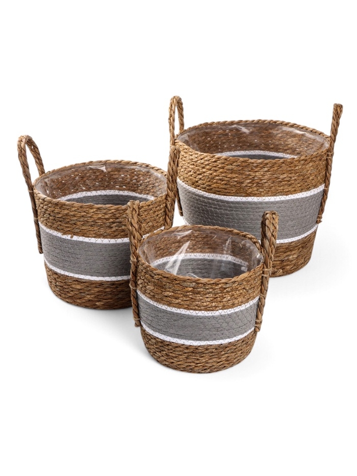Набор кашпо "Инга" серая полоса, 20,5х25/25,5х28/27х33см