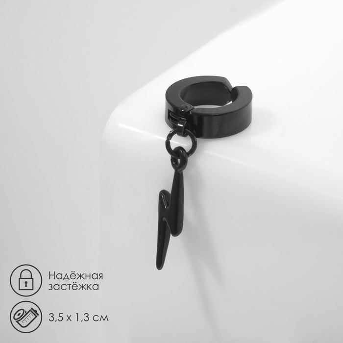 Моно-серьга «Молния», цвет чёрный