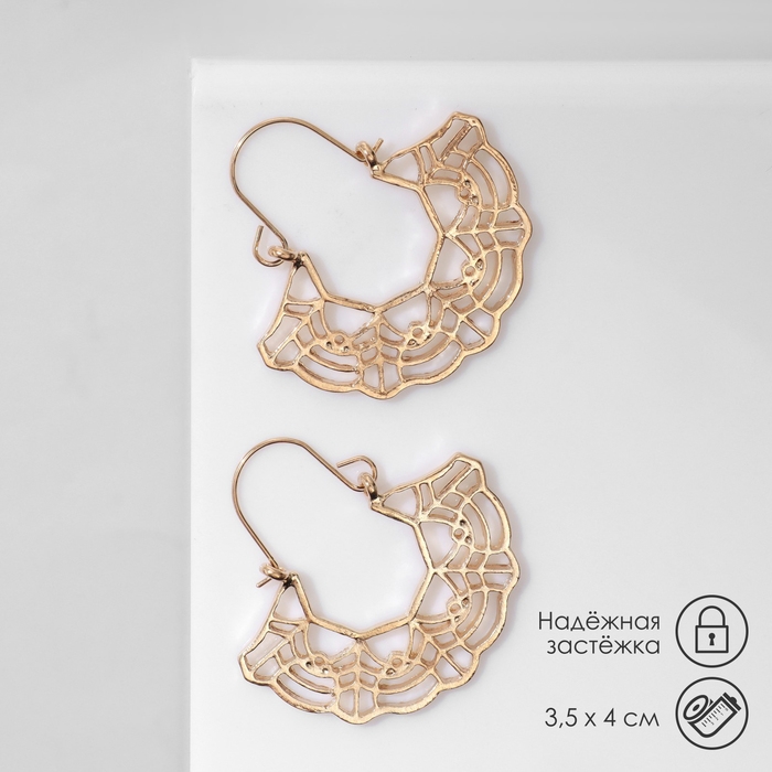 Серьги металл «Восток» ажур, цвет золото