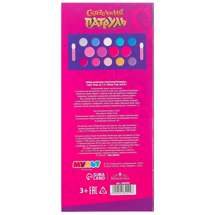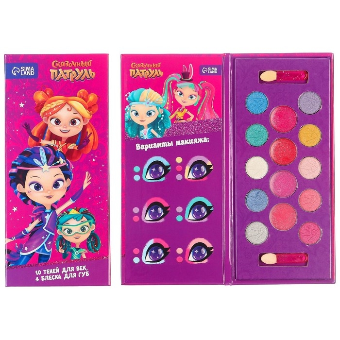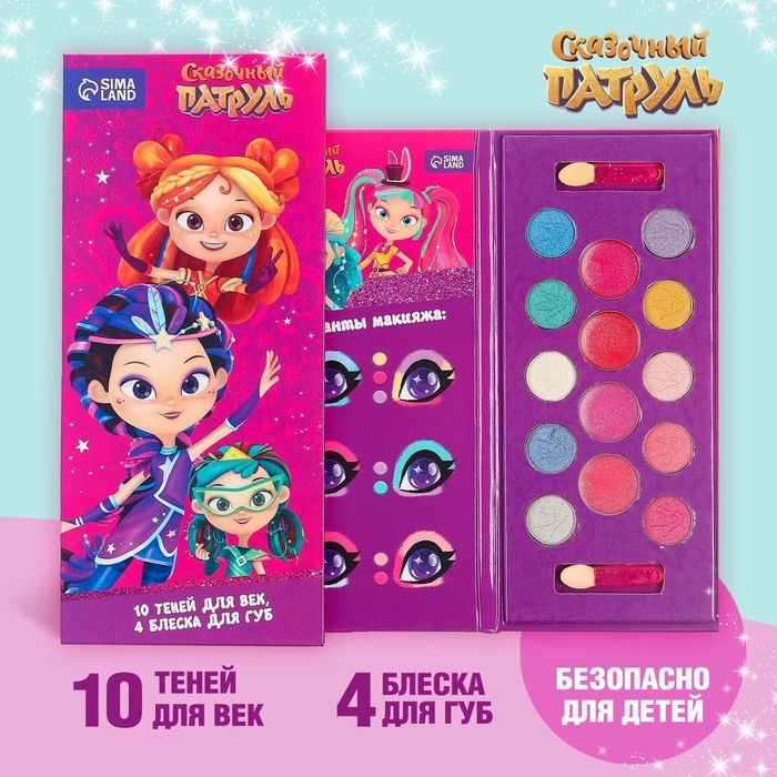 Набор косметики, тени 10 цветов, блеск 4 цвета "Подружки", Сказочный патруль
