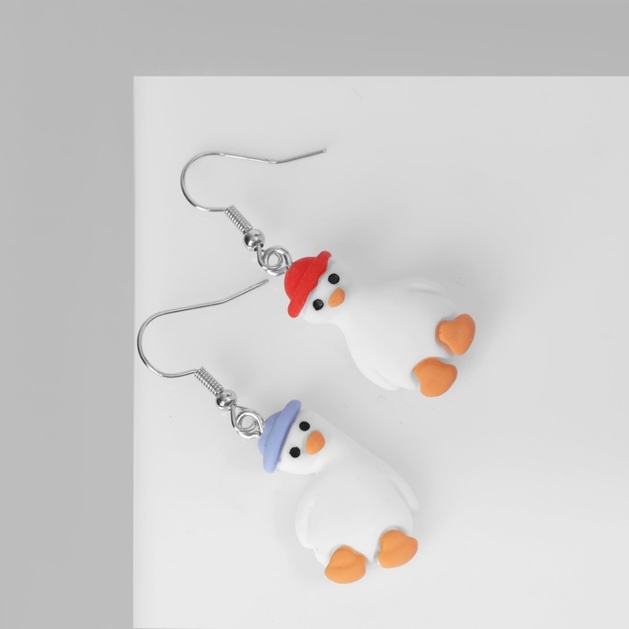 Серьги ассорти «Радость» гуси в шапках, цветные в серебре