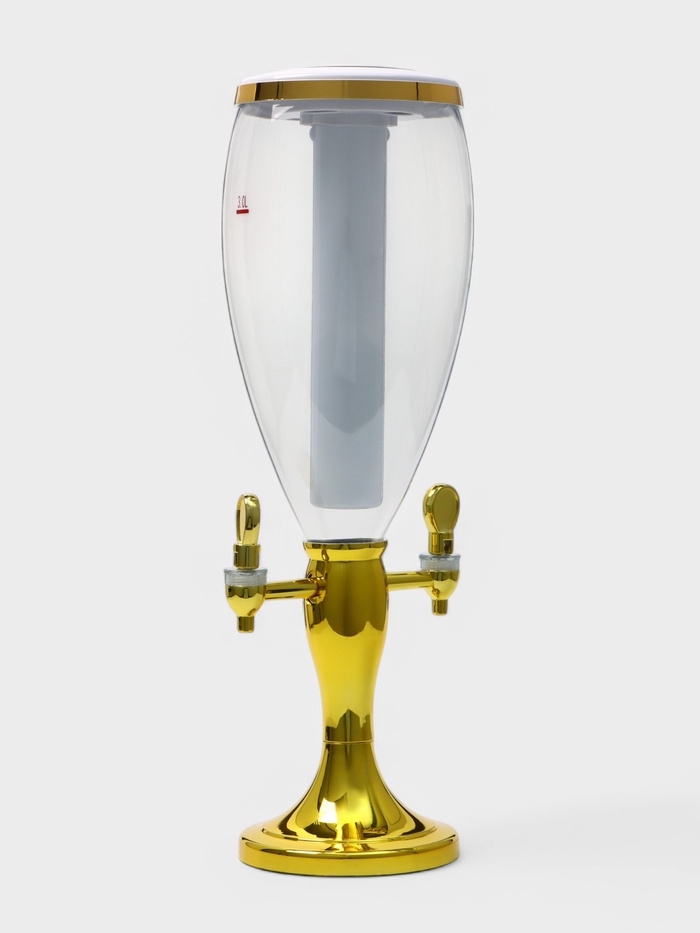 Башня пивная VaviloneDouble, 3 л, ёмкость для льда, подсветка, пластик, золотистая