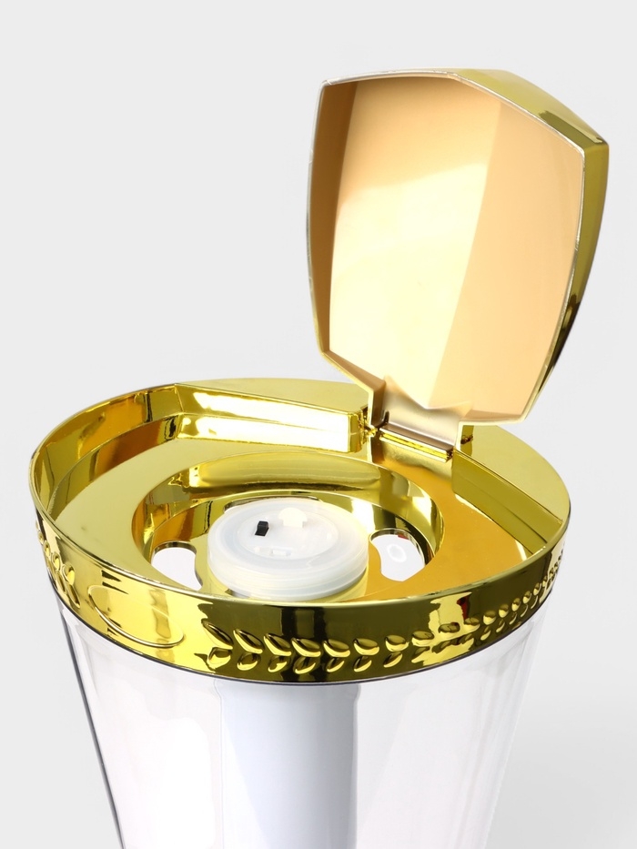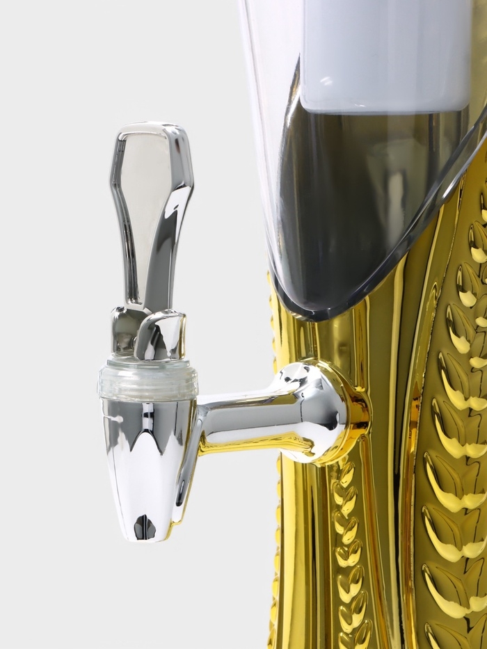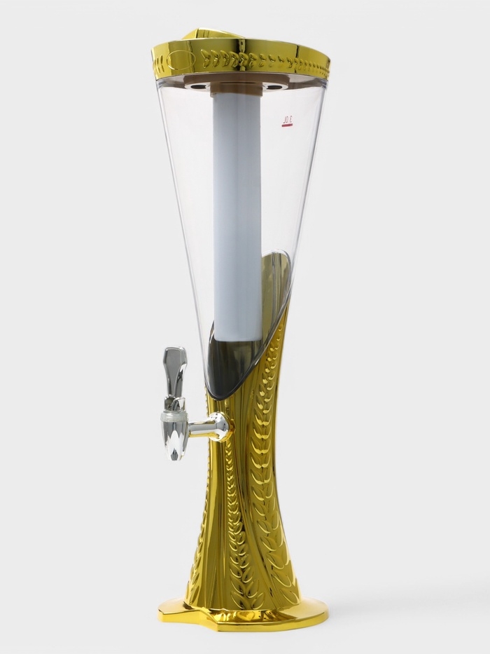 Золотистый цвет и современный дизайн делают пивную башню центром внимания на любом мероприятии. Подсветка добавляет элемент уюта и праздника, создавая особую атмосферу.