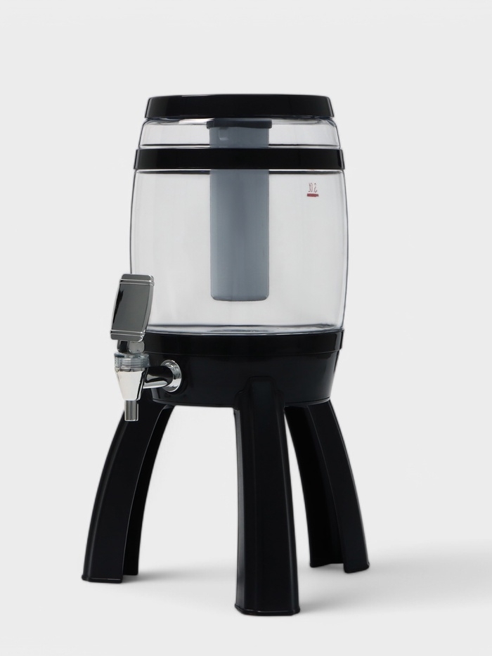 Пластиковый корпус делает бочонок лёгким и удобным в использовании. Материал устойчив к повреждениям и легко моется, что обеспечивает долгий срок службы.