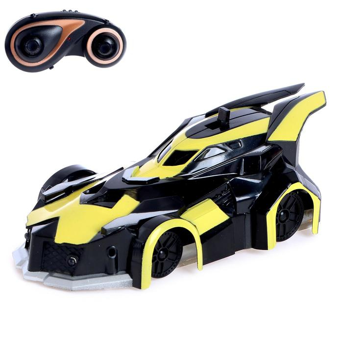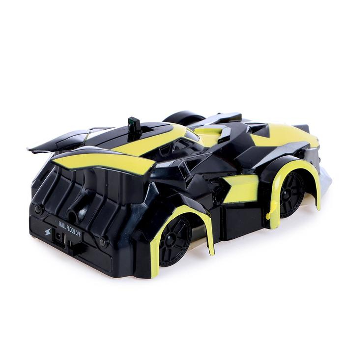 Антигравитационная машинка «СпортКар», радиоуправление, аккумулятор, ездит по стенам, свет, цвет жёлтый