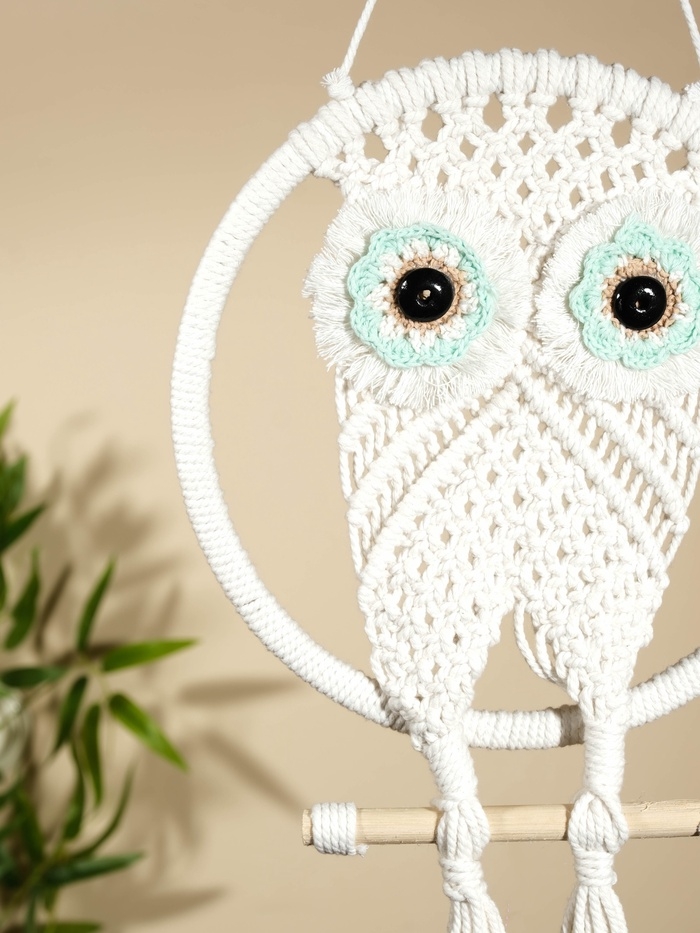 Ловец снов "Сова" 22х80 см. голубой глаз