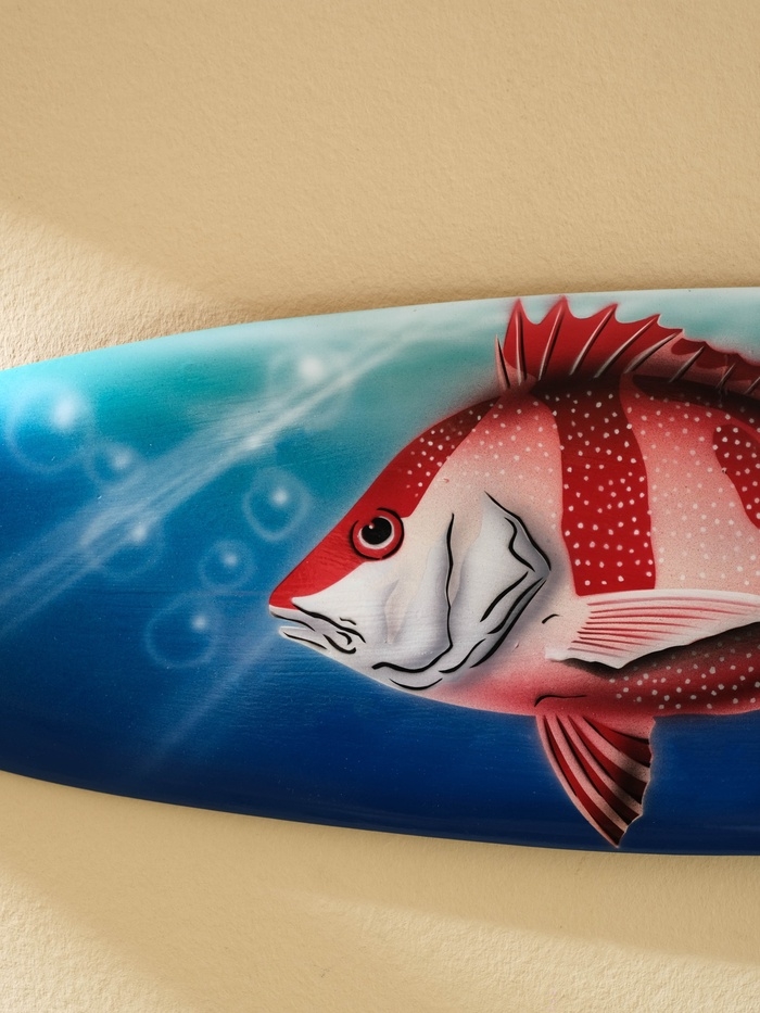 Панно "Доска для сёрфа "Рыбка" дерево 80х21 см