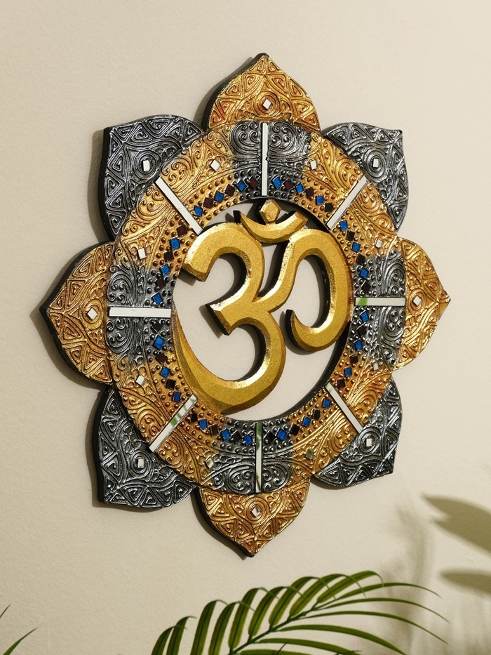 Панно резное МДФ "ОМ", 40х40х0,6 см, золотое основание