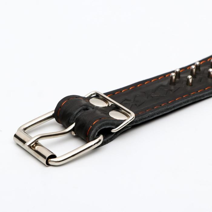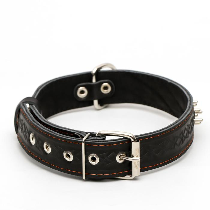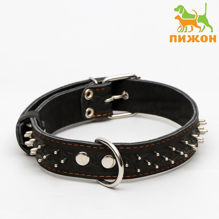 Ошейник кожаный двухслойный клёпаный "Ёж", 65 х 3,5 см, ОШ 50-60 см, чёрный