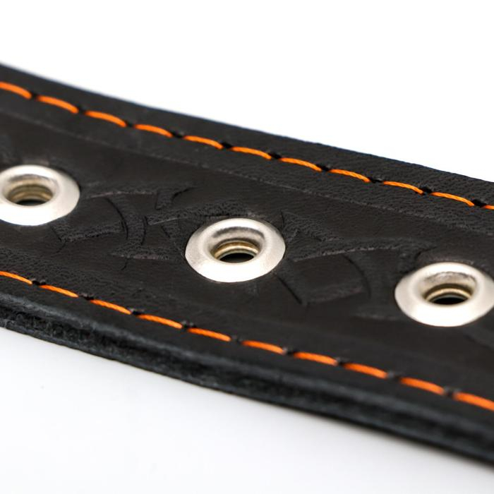 Ошейник кожаный тисненый на фетре, безразмерный, 67 х 3,5 см, ОШ 31-60 см, рыжий