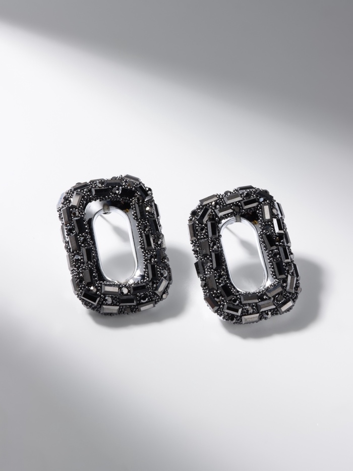 Серьги со стразами «Блеск» мягкий прямоугольник, серые в серебре