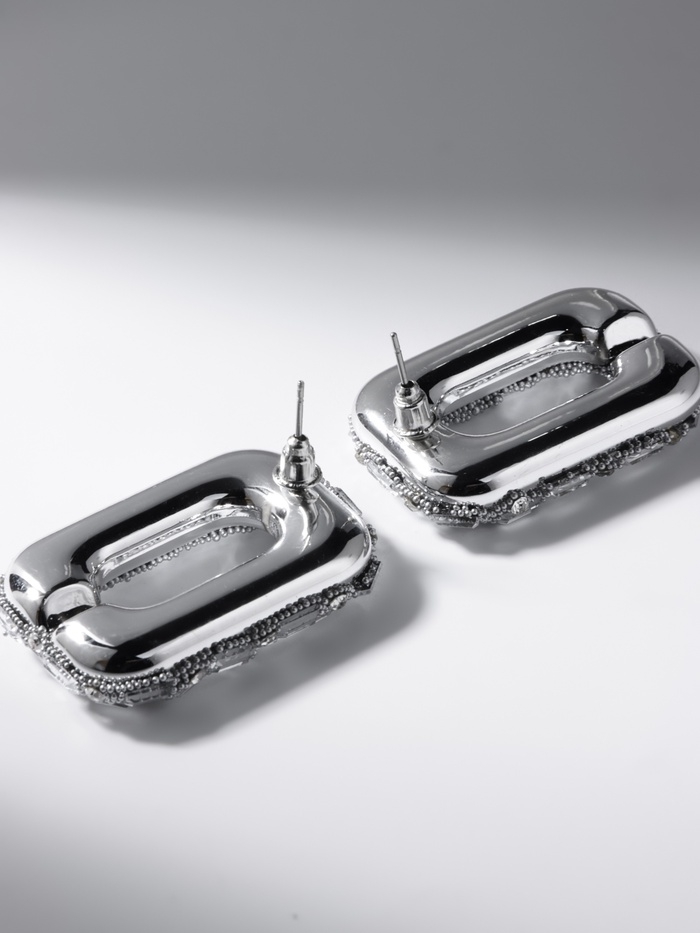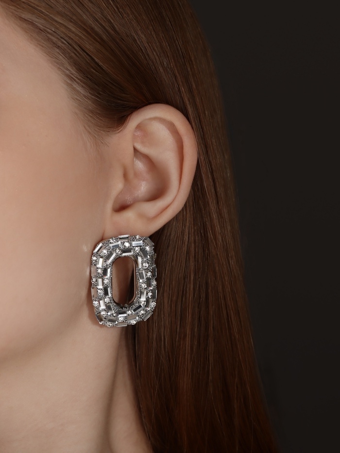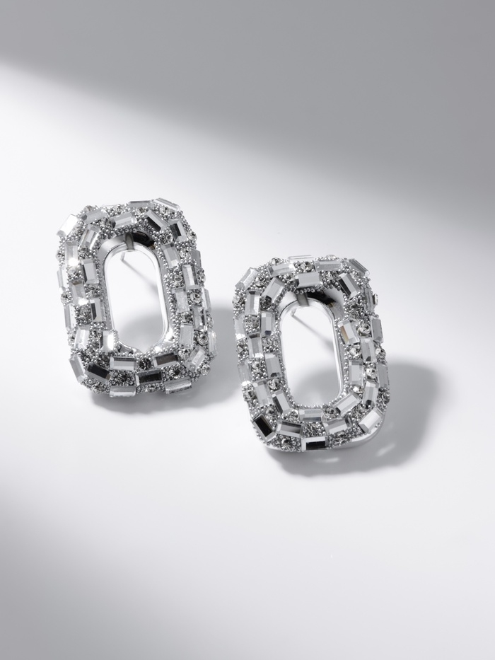 Серьги со стразами «Блеск» мягкий прямоугольник, белые в серебре