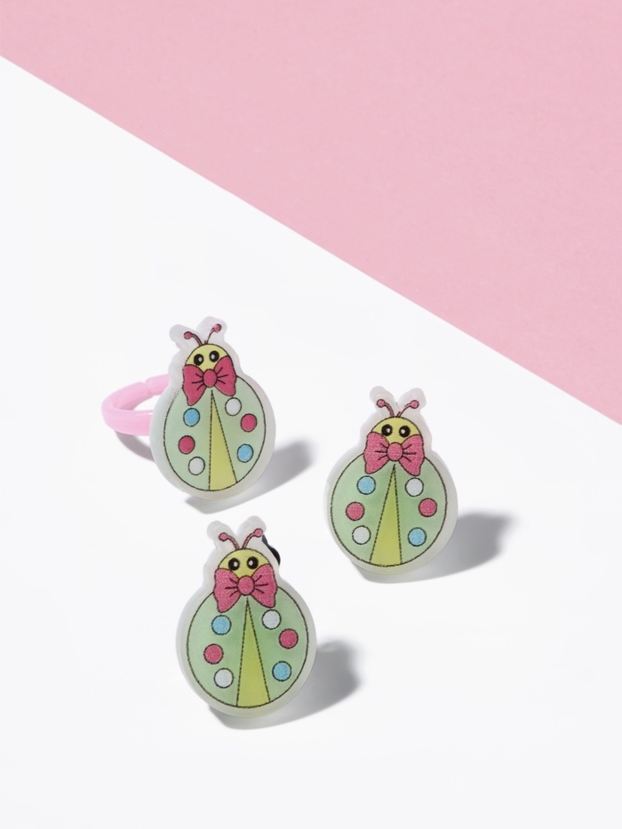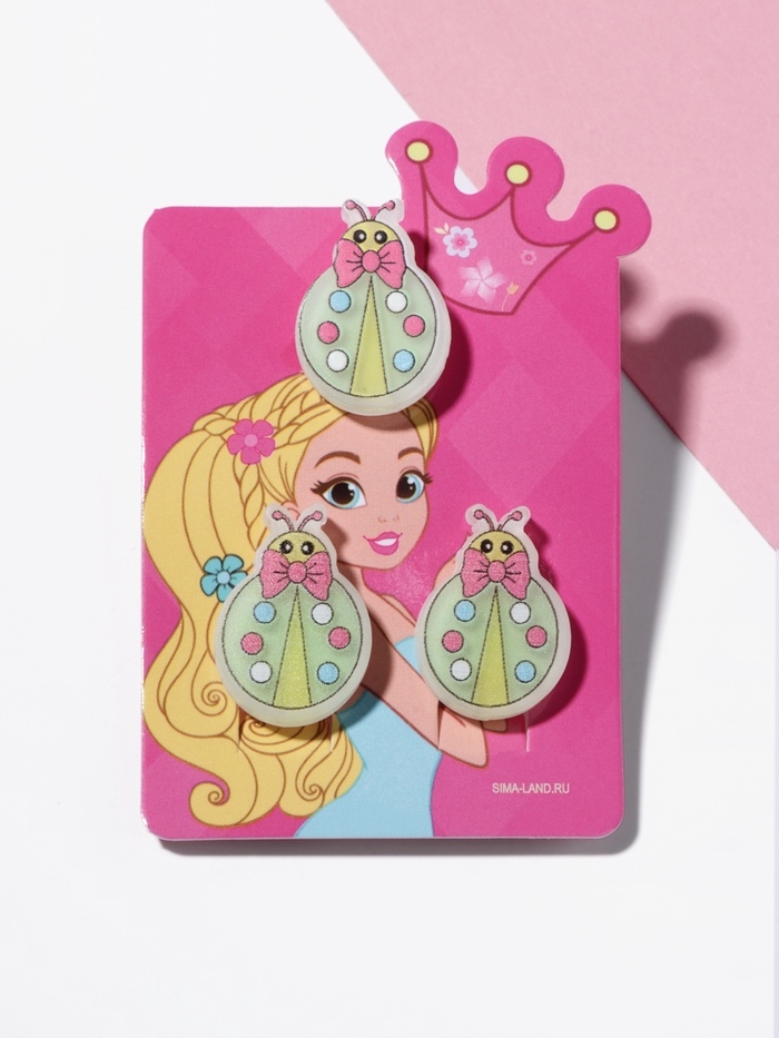 Набор детский "Выбражулька" 2 предмета: клипсы, кольцо, божья коровка, цвет МИКС