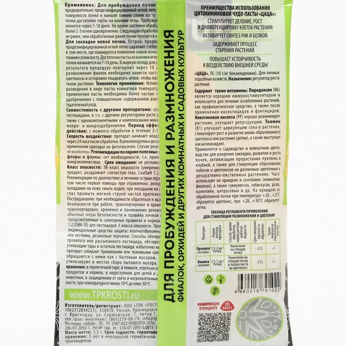 Цитокининовая паста для орхидей и комнатных цветов "Letto", 1,5 мл