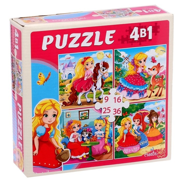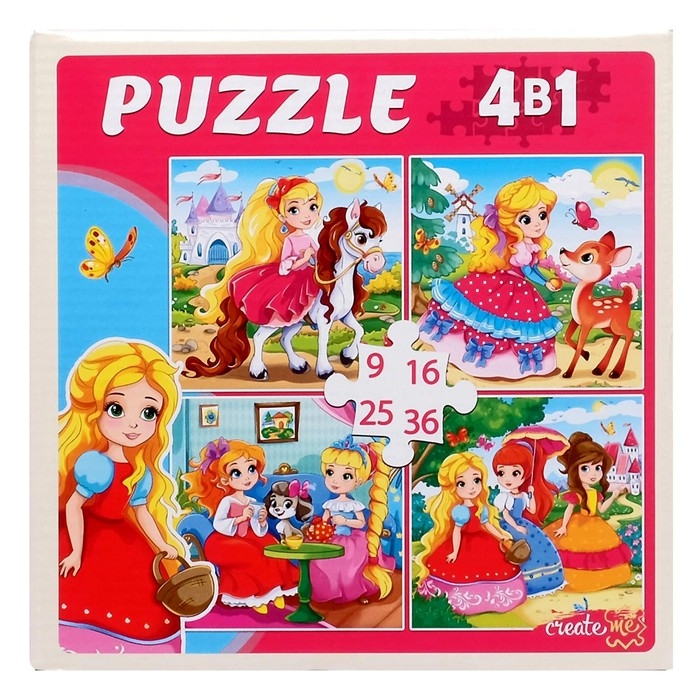 Набор пазлов 4 в 1 «Милые принцессы», 9,16, 25, 36 элементов