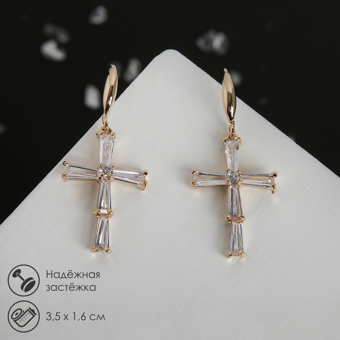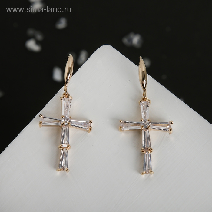 Серьги со стразами «Крестики искры» цвет белый в золоте
