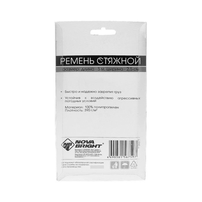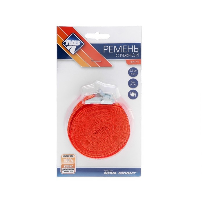 Стяжка груза ленточная Nova Bright, 2,5 см х 5 м, в блистере, с фиксатором, 200 кг