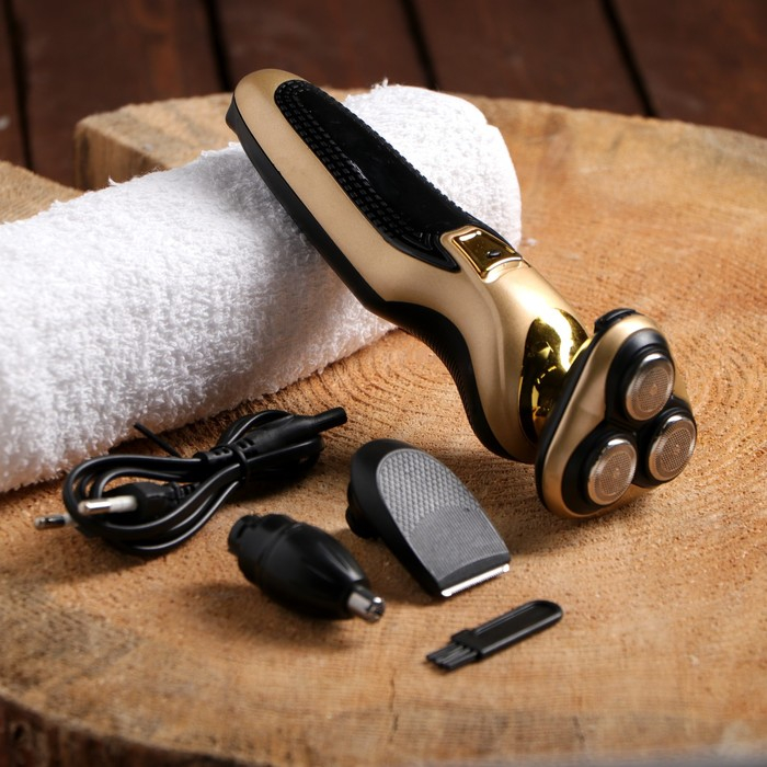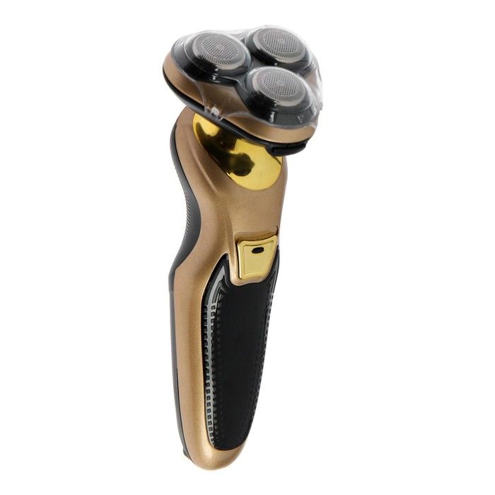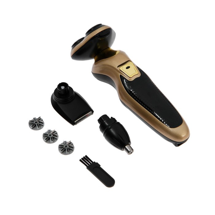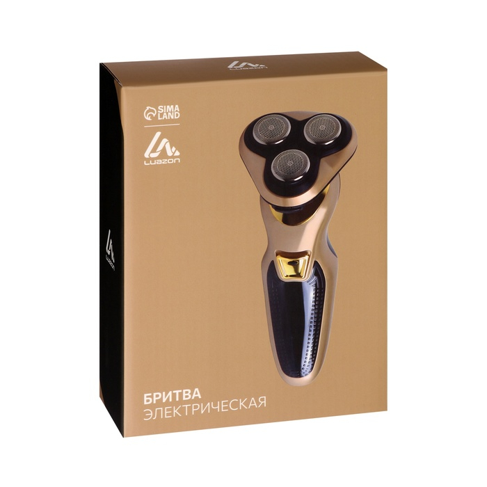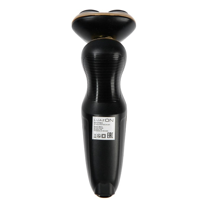 Электробритва Luazon LBR-10, 3 Вт, роторная, 3 головки, сухое бритьё, триммер, от АКБ/220 В