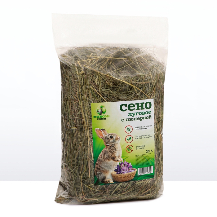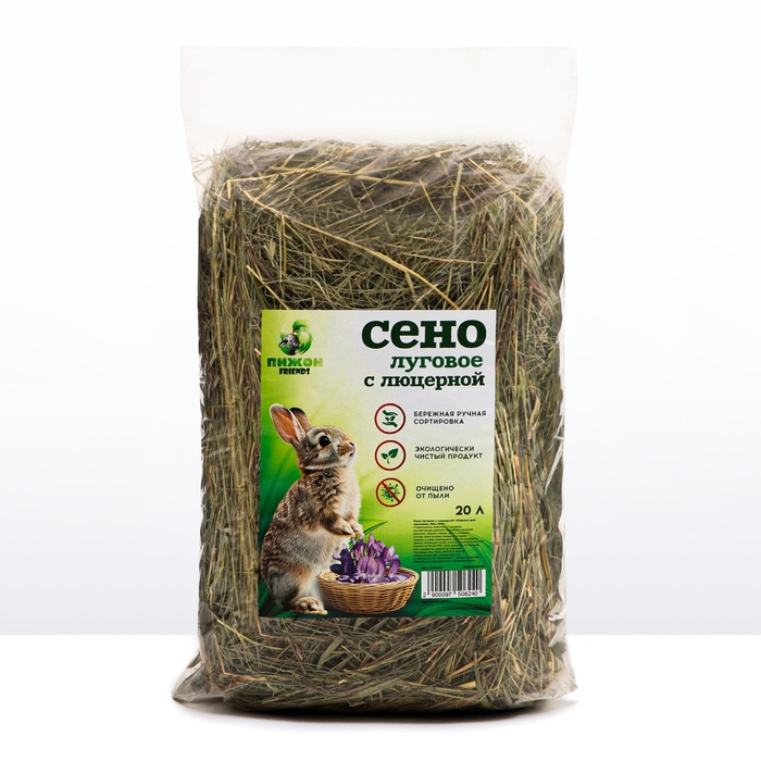 Сено луговое с люцерной «Пижон» для грызунов, 20 л, 500 г