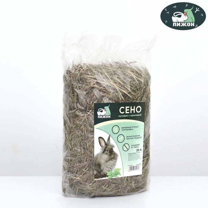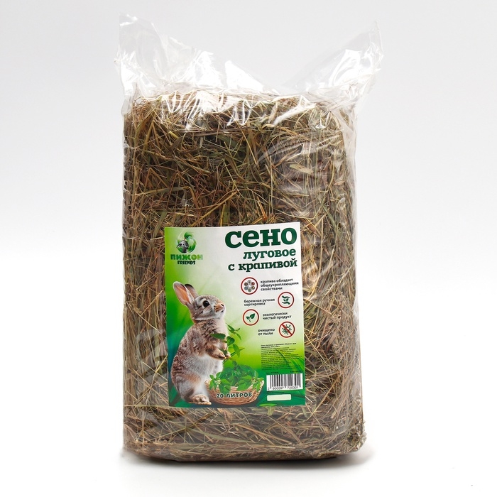 Луговое сено с крапивой для грызунов из 100% натуральных трав. Используется в качестве подстилки для грызунов: морских свинок, кроликов и шиншилл. Сено хорошо впитывает влагу и маскирует неприятные запахи.