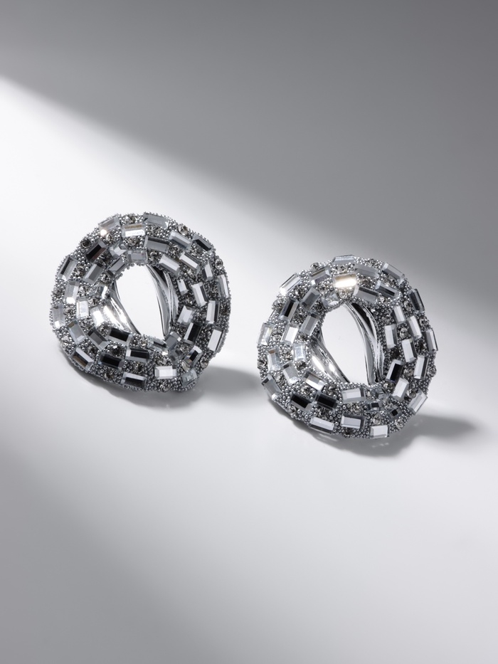 Серьги со стразами «Блеск» бублик, белые в серебре