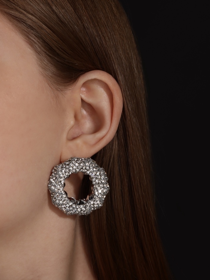 Серьги со стразами «Блеск» кольцо, белые в серебре