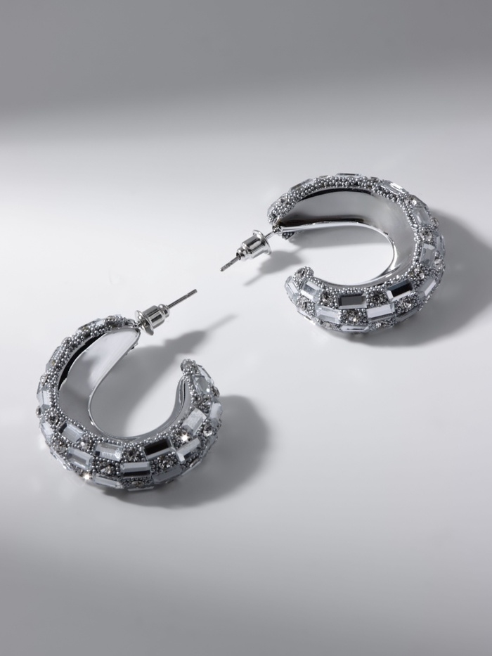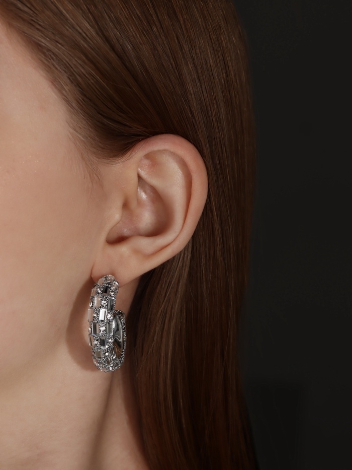 Серьги со стразами «Блеск» прямоугольники, белый в серебре