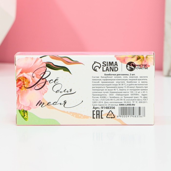 Набор бомбочки для ванны ЧИСТОЕ СЧАСТЬЕ «8 Марта!», 2х65 г