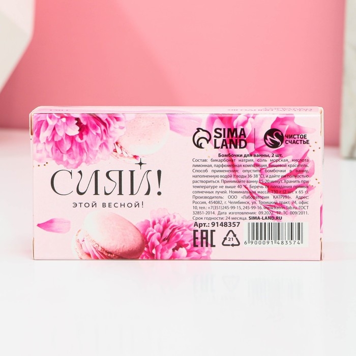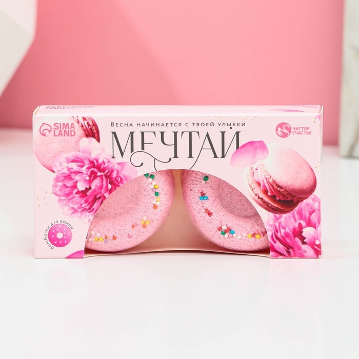 Подарочный набор косметики «Мечтай!», бомбочки для ванны с добавками 2 х 65 г, ЧИСТОЕ СЧАСТЬЕ