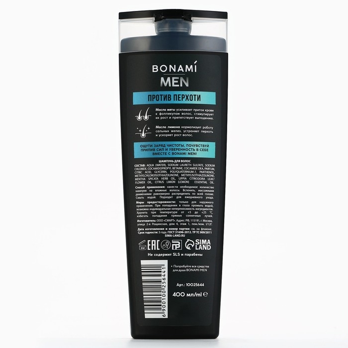 Шампунь для всех типов волос против перхоти For men, глубокое очищение, 400 мл , BONAMI