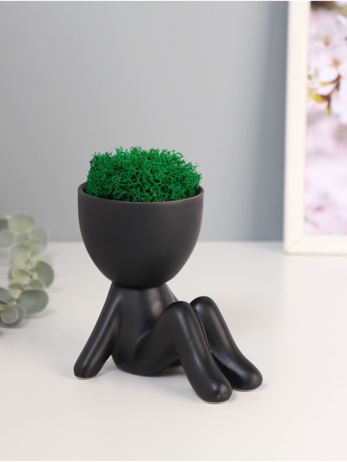 Кашпо керамика "Мистер Грин на чиле" 10*9,5*12 см черный