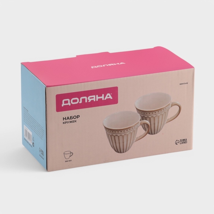 Набор кружек 2 шт Доляна "Винтаж" 350 мл,12х9х10 см, цвет бежевый