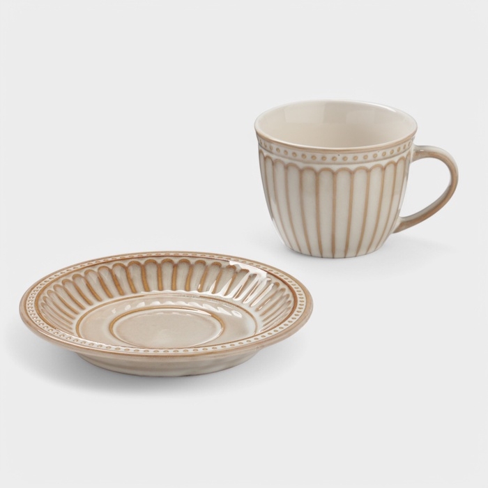 Чайная пара Доляна "Винтаж" 250 мл блюдце 15х2 см, кружка 11,5х9х7 см, цвет бежевый